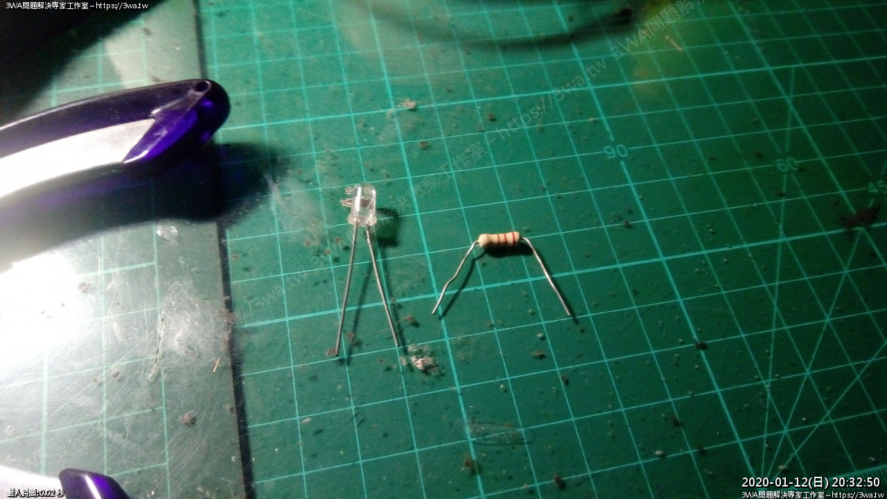 所以隨手拿一顆二極體,充當 LED ,只是這樣不會發光