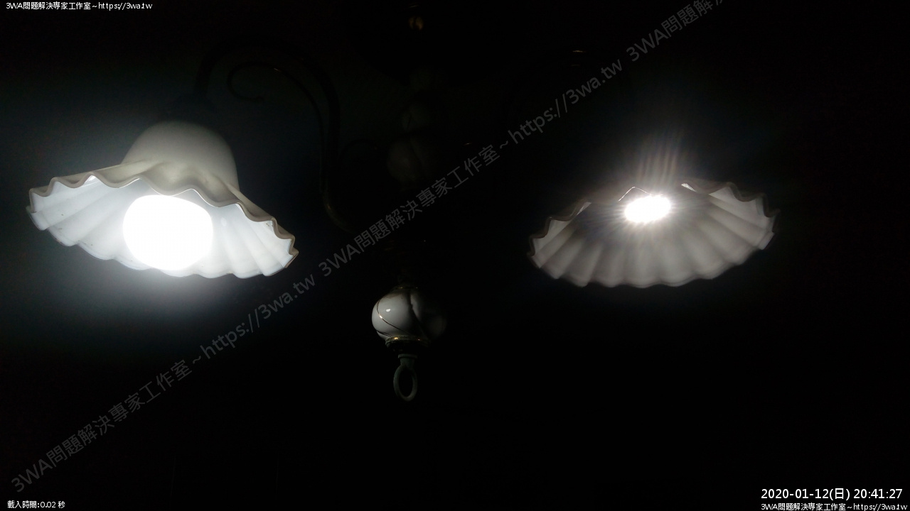 裝上燈炮測試看看,雖然少了一顆 LED 的亮度,但看起來沒影響多少