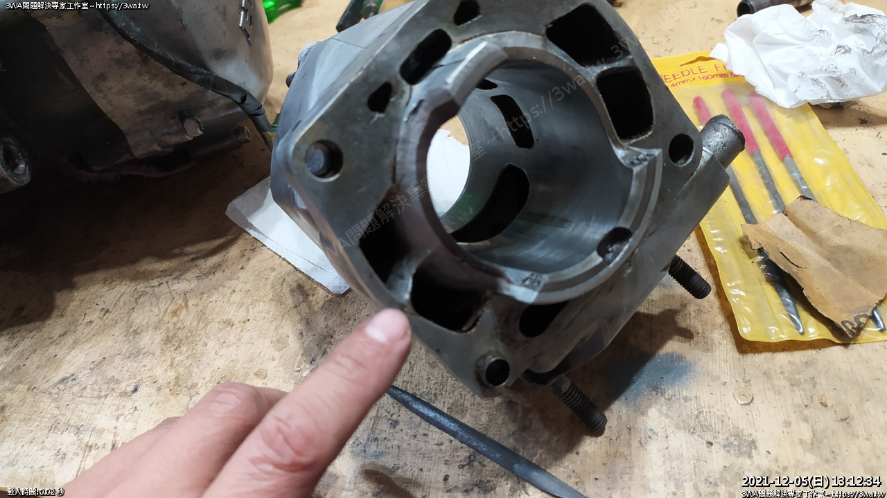 先整理一下汽缸頭的平面,拿個平的東西墊上砂紙,繞8磨一磨