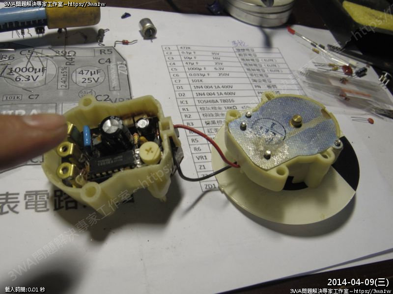 這次挑戰的,是爆電容,甚至燒電阻的碼表,昨天本來打算換IC修這顆的,看到東西壞成這樣