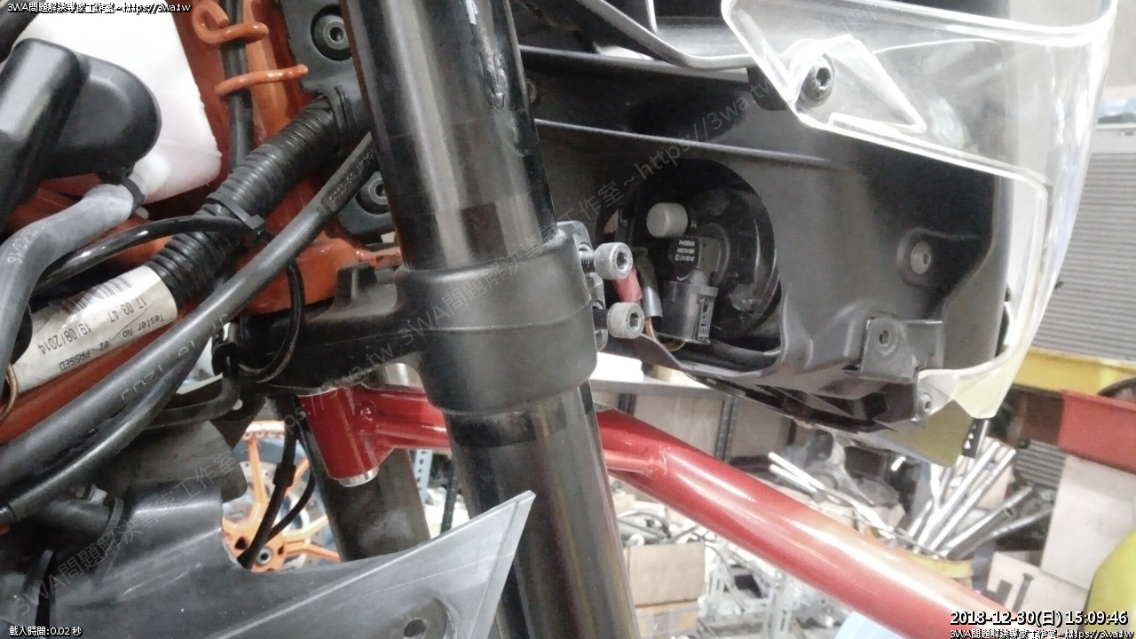 回到車子,把前叉戮回去,高度就照原本的位置,跟另一支前叉一樣即可