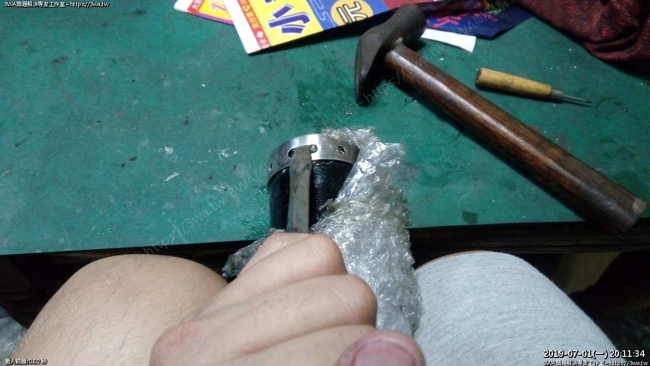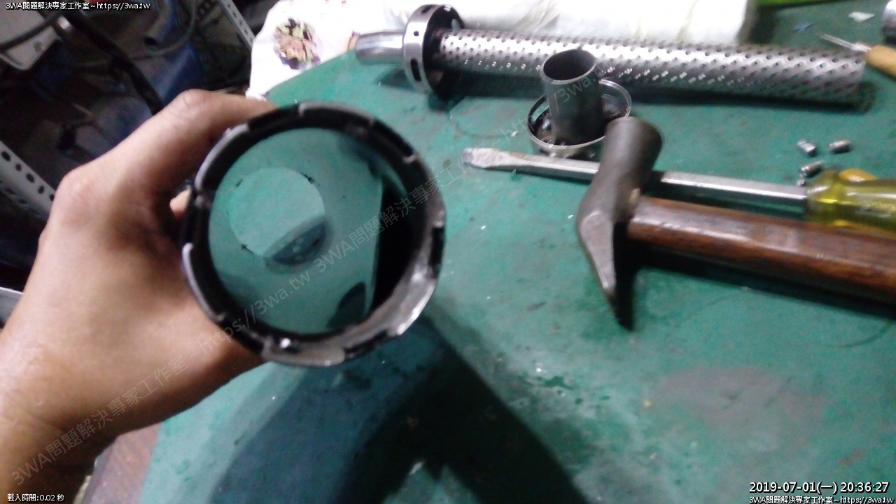 內管跟尾段出氣嘴的地方是焊在一起的,所以要連尾段的鉚丁也都拆下