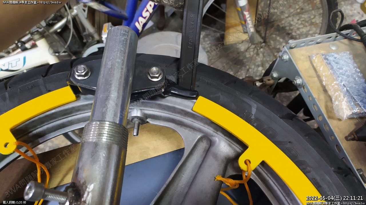大概是這個感覺,特工跟輪框固定好,拆裝輪胎工具比較不會跳