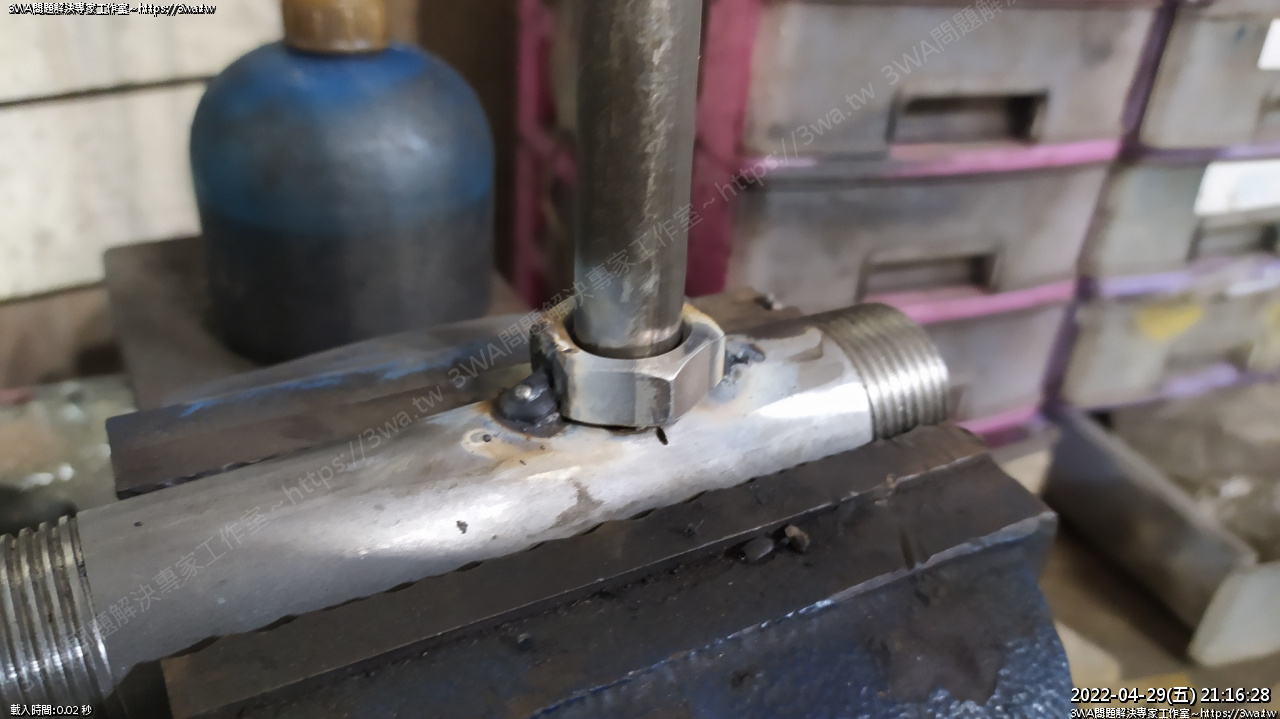 準備焊螺帽,研究一下要怎麼固定才會準,手邊沒有M18螺絲