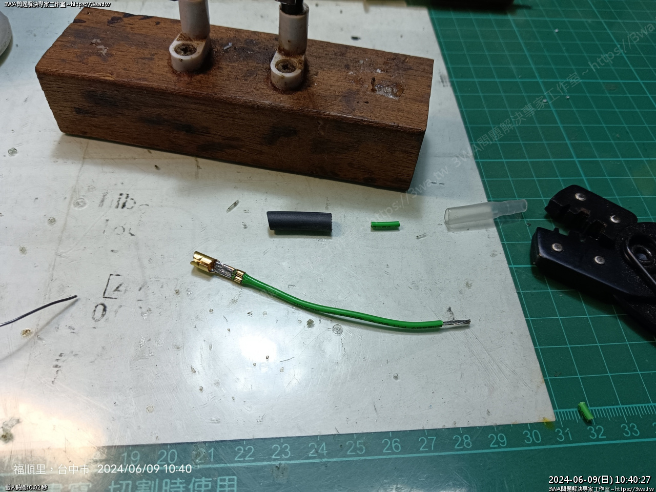 斜口鉗剝開黑線,露出銅線,先用鱷魚夾測試看看