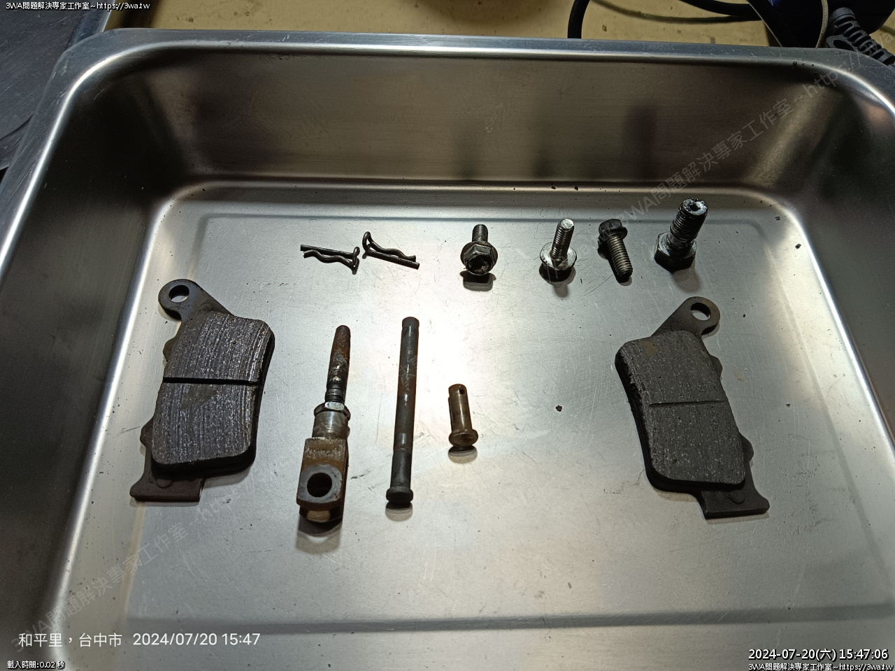 準備裝來令片,碟盤用煞清擦一擦