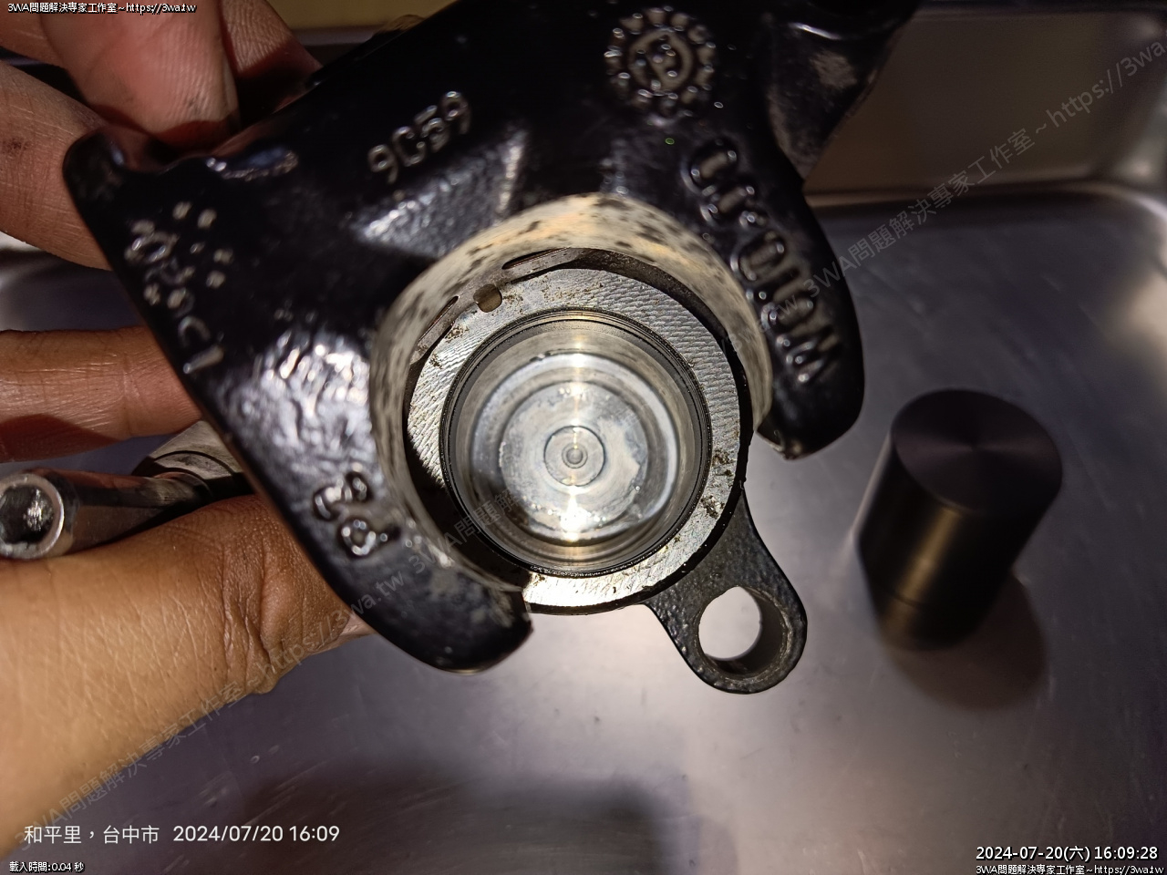 開口扳手檔著,按一下活塞就出來了