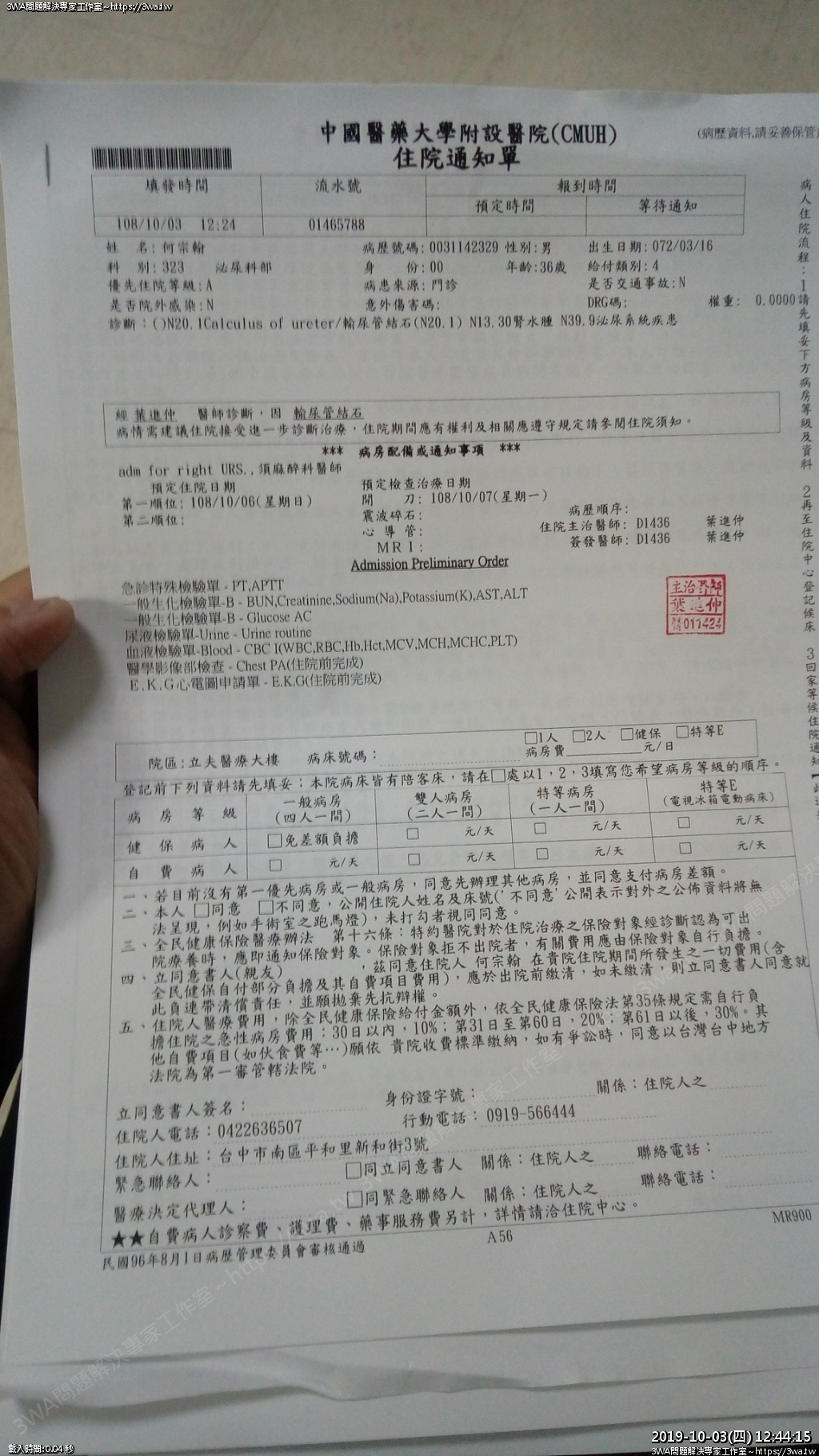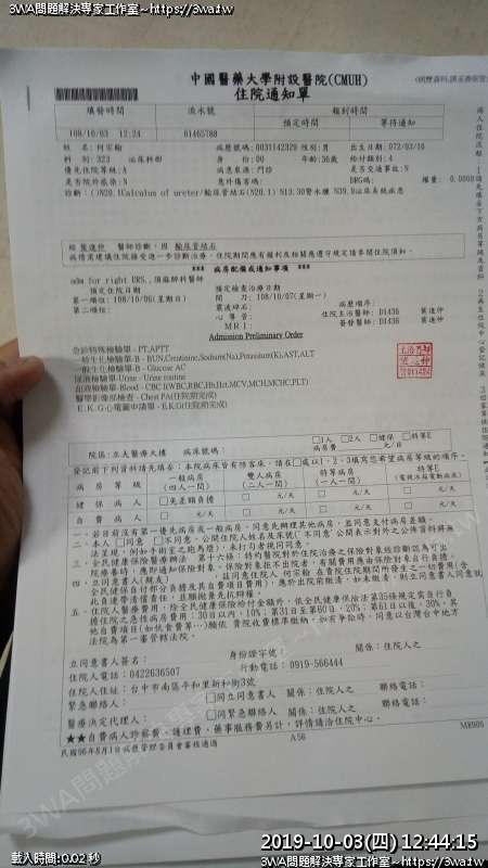 | 內容說明:2019.10.07腎結石開刀 | 瀏覽人數: 1303 |