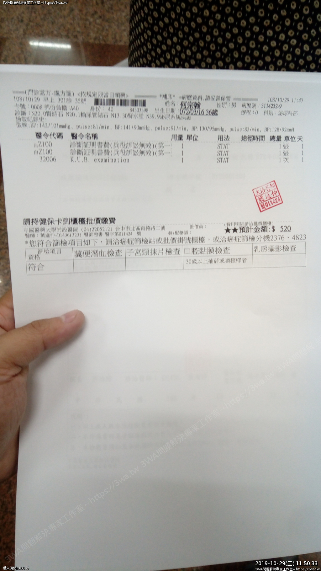 | 內容說明:2019.10.07腎結石開刀 | 瀏覽人數: 1476 |