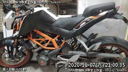 | 內容說明:2020.11.07KTM390廢側柱 | 瀏覽人數: 1352 |