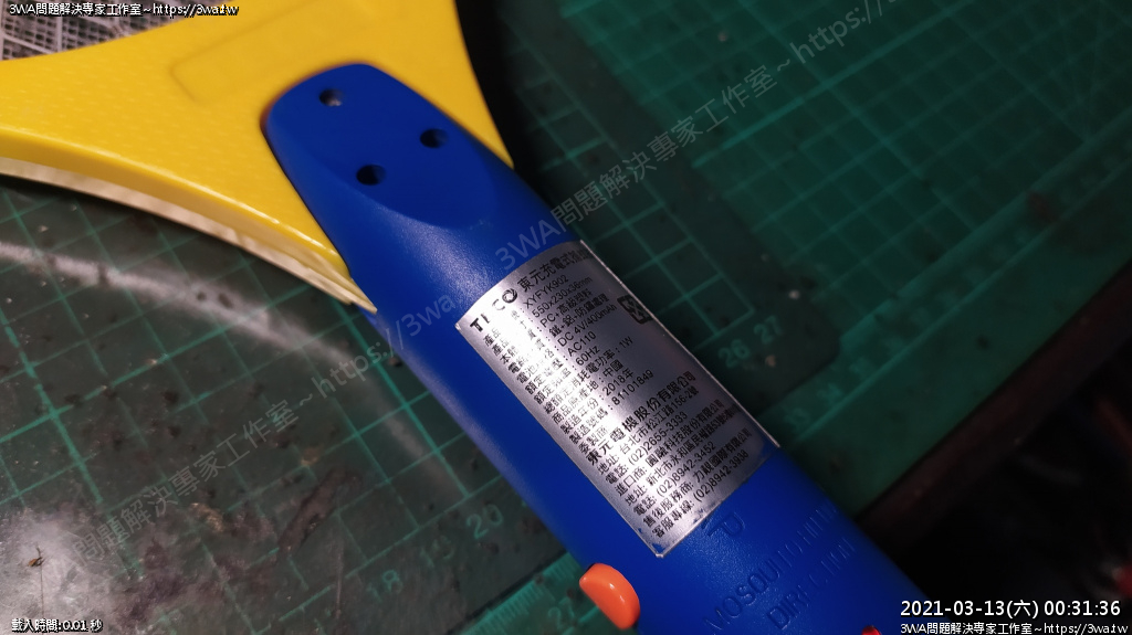 | 內容說明:2021.03.13電蚊拍更換鋰電池 | 瀏覽人數: 1227 |