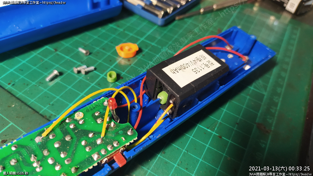 | 內容說明:2021.03.13電蚊拍更換鋰電池 | 瀏覽人數: 1231 |