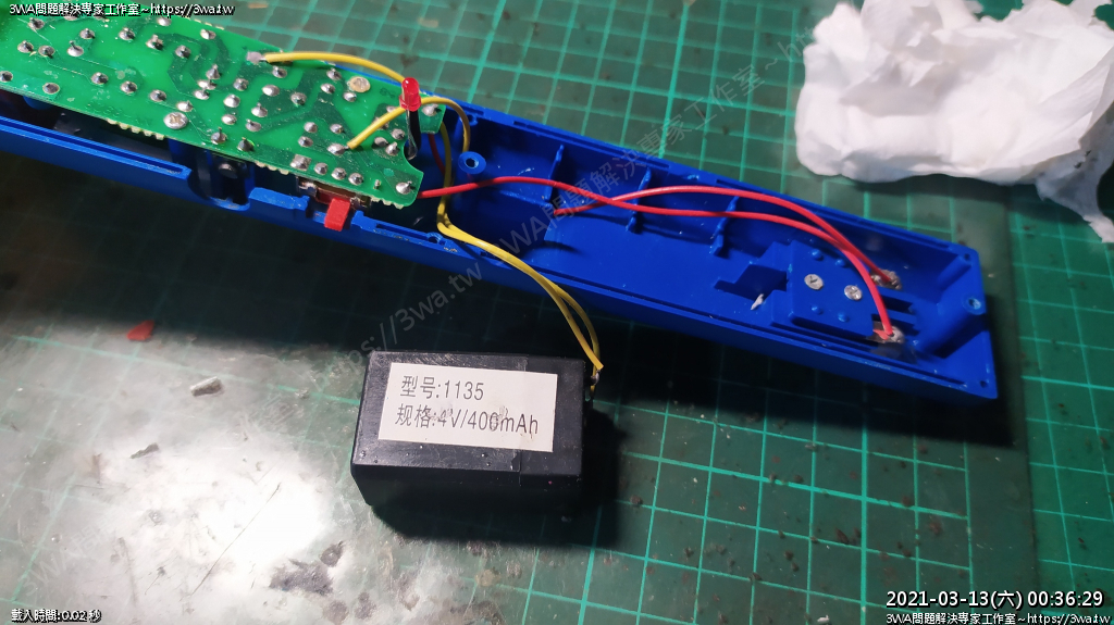 | 內容說明:2021.03.13電蚊拍更換鋰電池 | 瀏覽人數: 1238 |