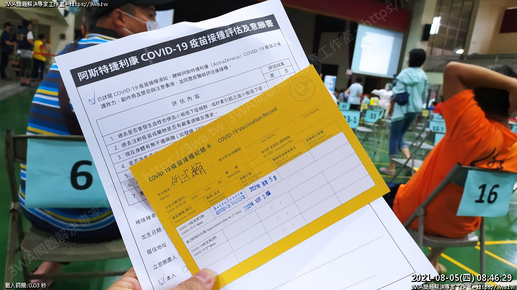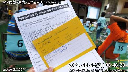 | 內容說明:2021.08.05打AZ疫苗 | 瀏覽人數: 1148 |