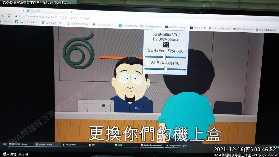 | 內容說明:2021.10.03netflix字幕加大 | 瀏覽人數: 1117 |