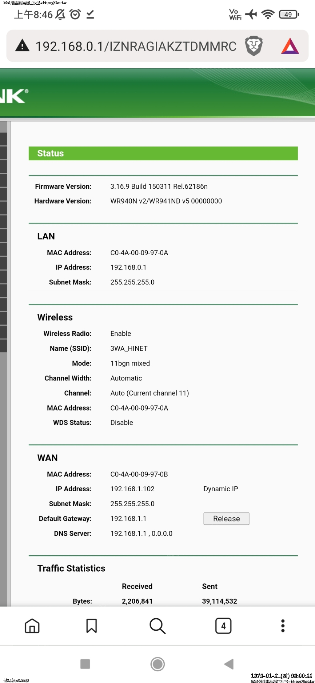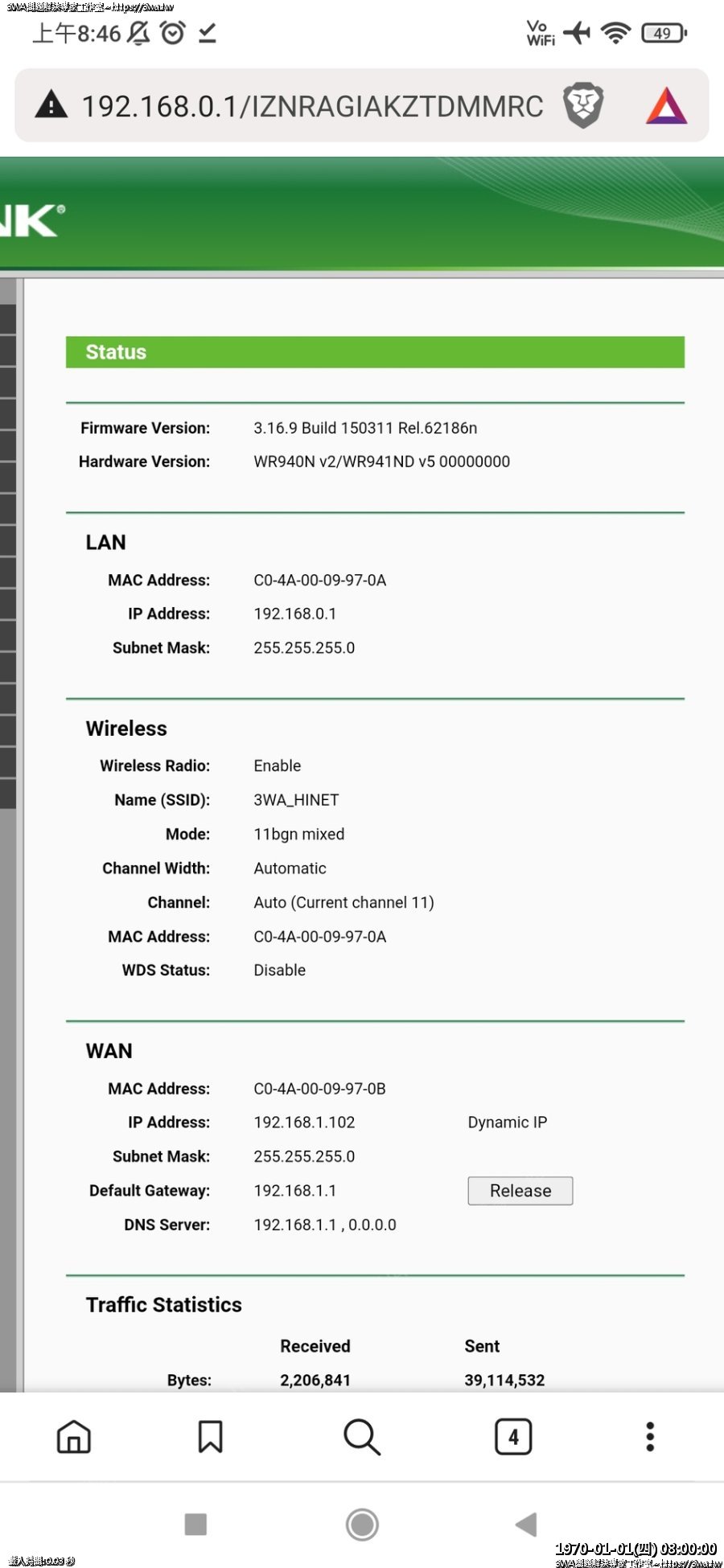 | 內容說明:2023.06.14 Router 斷線斷電重開 | 瀏覽人數: 909 |