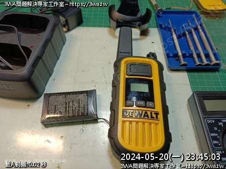| 內容說明:2024.05.21維修Dewalt walkie talkie | 瀏覽人數: 631 |