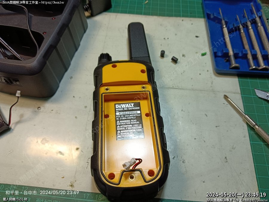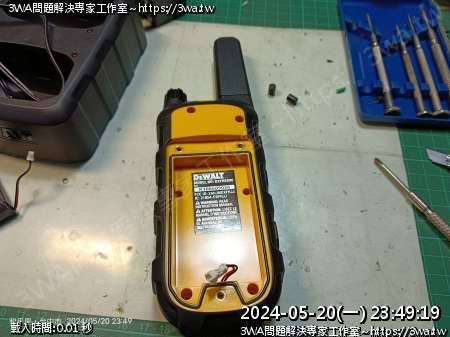 | 內容說明:2024.05.21維修Dewalt walkie talkie | 瀏覽人數: 587 |