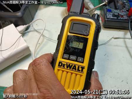 | 內容說明:2024.05.21維修Dewalt walkie talkie | 瀏覽人數: 718 |