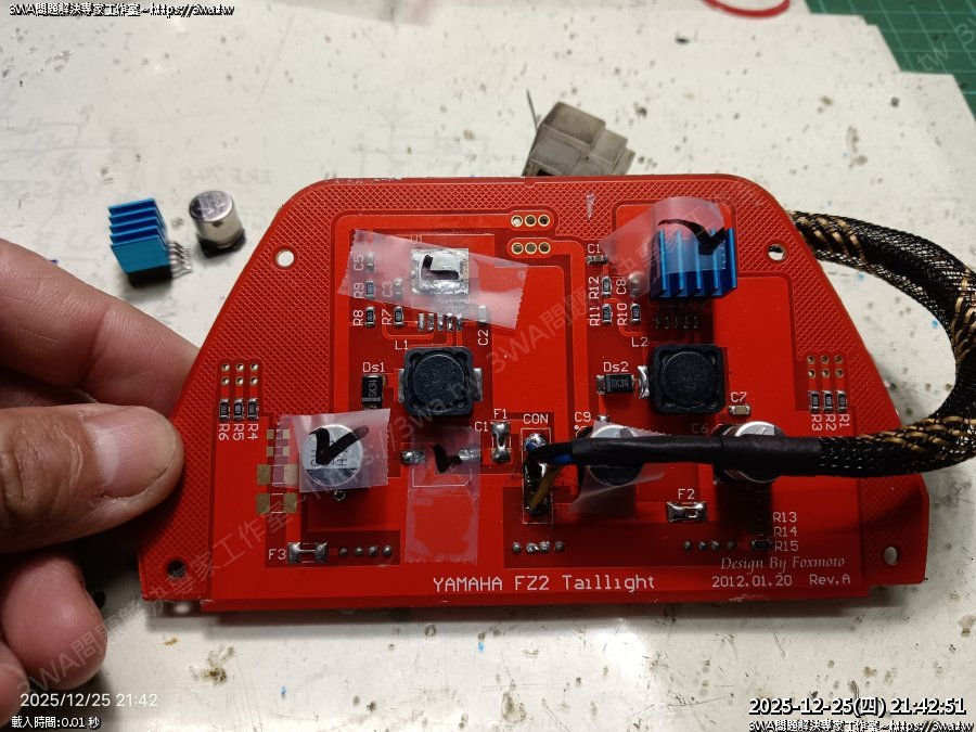 | 內容說明:2025.12.25FZ2 狐大LED尾燈維修 | 瀏覽人數: 91 |