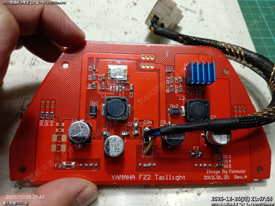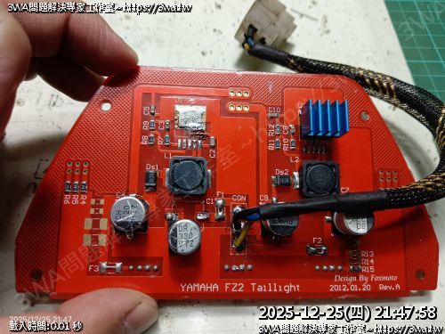 | 內容說明:2025.12.25FZ2 狐大LED尾燈維修 | 瀏覽人數: 98 |