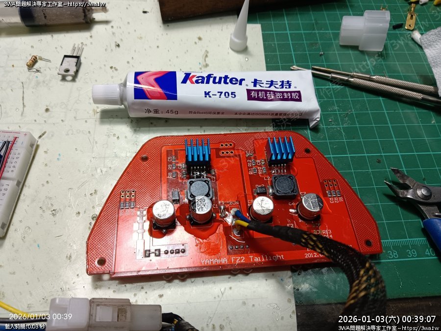 | 內容說明:2025.12.25FZ2 狐大LED尾燈維修 | 瀏覽人數: 106 |