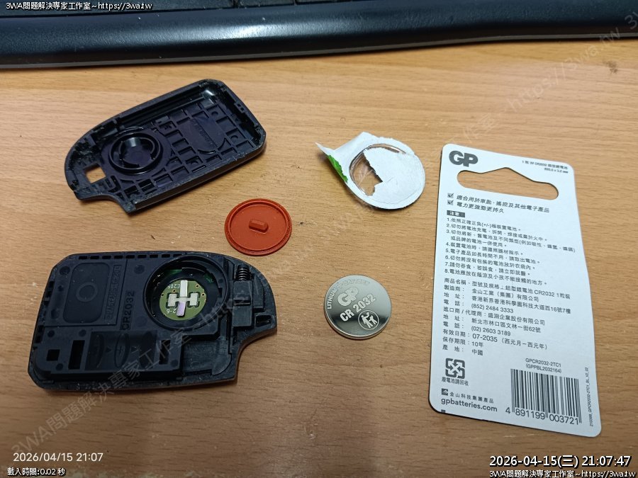 | 內容說明:2026.04.15Yaris更換搖控器電池 | 瀏覽人數: 14 |